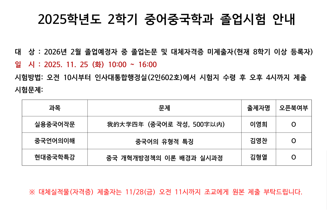 2026학년도 2월 졸업예정자 졸업시험 문제안내