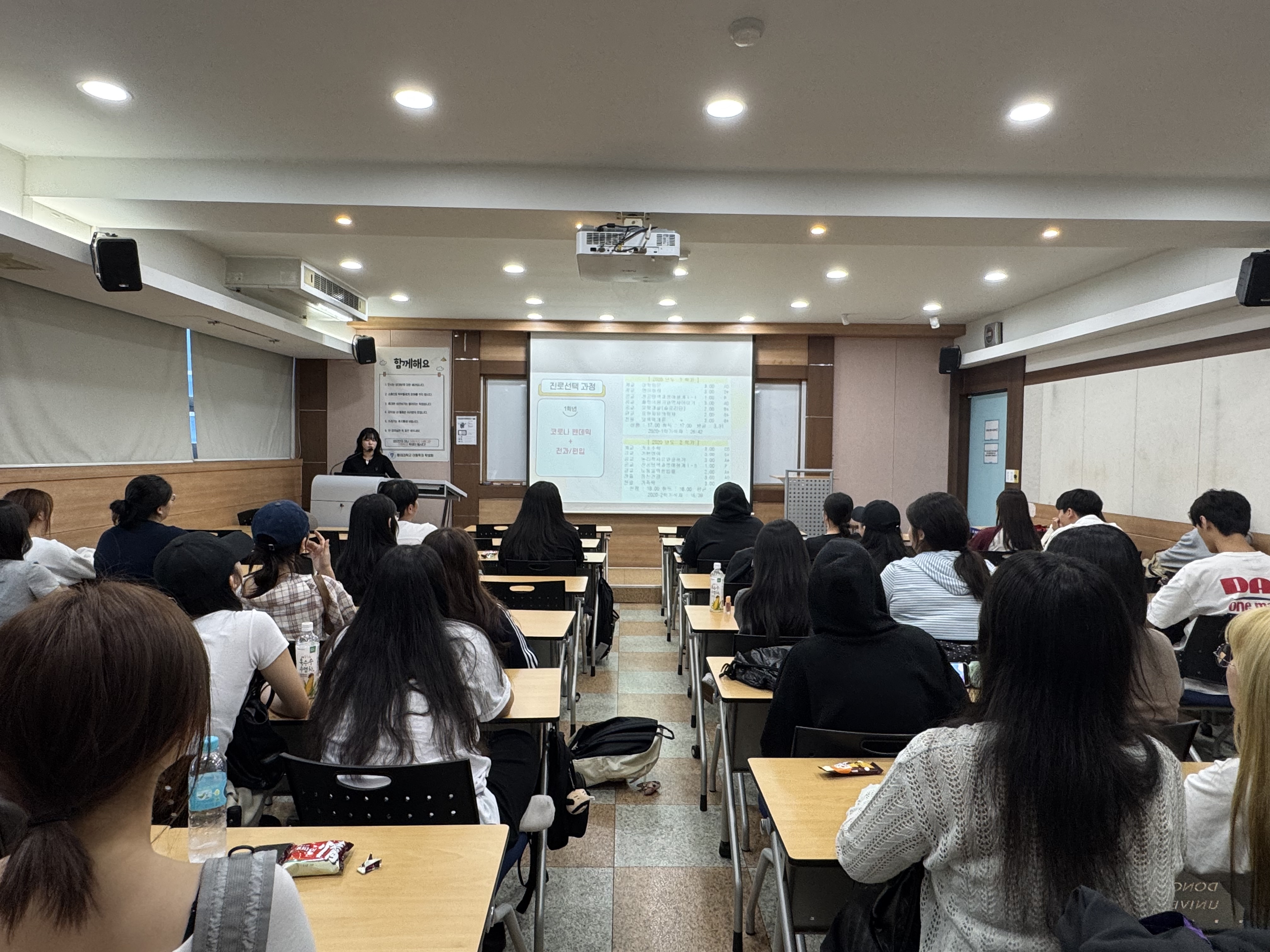 이번 프로그램에서는 한국석유공사돌고래어린이집 김현아 선생님께서 직접 참여하여 어린이집 현황과 푸르니보육지원재단의 보육프로그램 실천 사례를 소개하고, 학과 입학 후 코로나 팬데믹으로 겪은 어려움과 이를 극복한 경험을 공유하였습니다. 또한 봉사, 근로, 실습, 학술제, 연구 활동 등 다양한 경험을 통해 자신의 역량을 강화한 사례를 나누며, 주어진 기회를 적극적으로 도전하고 열정적으로 활용하는 자세의 중요성을 강조했습니다. 재학생들은 선배의 실제 경험과 조언을 통해 진로와 취업 준비에 대한 구체적인 인사이트를 얻고, 학부 시절 다양한 활동의 중요성을 다시 한 번 인식하는 뜻깊은 시간을 가졌습니다.