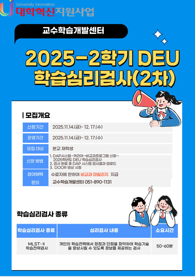 2025-2학기 DEU 학습심리검사 신청 안내(2차)