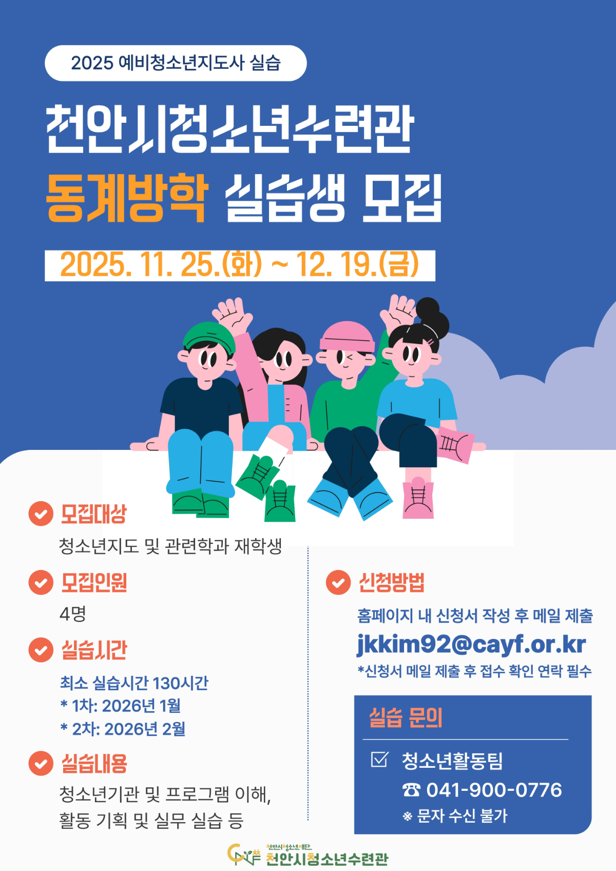 가. 건 명: 천안시청소년수련관 예비청소년지도사 동계방학 중 실습생 모집 안내
